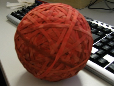 I've been collecting these red rubber bands that seem to appear out of nowhere for years now. I've even made them into a huge ball.